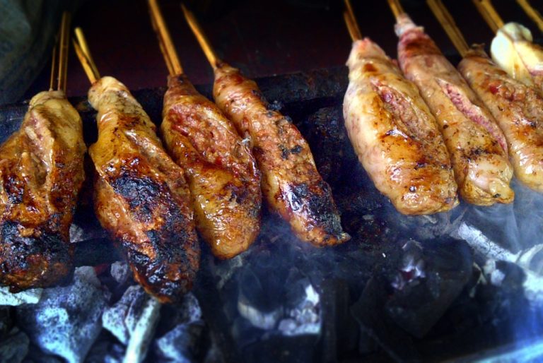 Warung Sate Bu Bejo ini terletak di daerah Lodjiwetan, Solo, Jawa Tengah ini menjadi langganan mantan Presiden Soeharto dan Presiden Jokowi. Berdiri hampir 45 tahun yang lalu, warung ini menyajikan sate kambing buntel sebagai andalan. Daging kambing cincang dibungkus dengan lemak kambing yang dibumbui dan dibakar, kemudian disantap dengan bumbu kecap, potongan tomat dan irisan bawang merah. Hmmm…